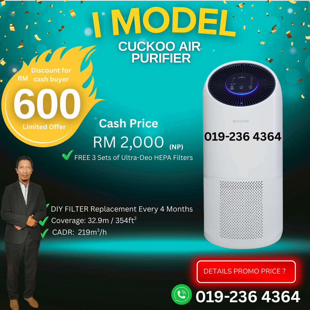 Penapis Udara Keluaran Baru CUCKOO 2023! Design Simple & Mudah Dipindahkan Kemana Saja! Mampu Menyerap Bahan Toksik, Kuman, Virus, Bulu Haiwan, & Habuk Halus! Serendah RM70 Sebulan Mampu Milik Untuk Anda! Tekan Button Whatsapp Untuk Info Lanjut!