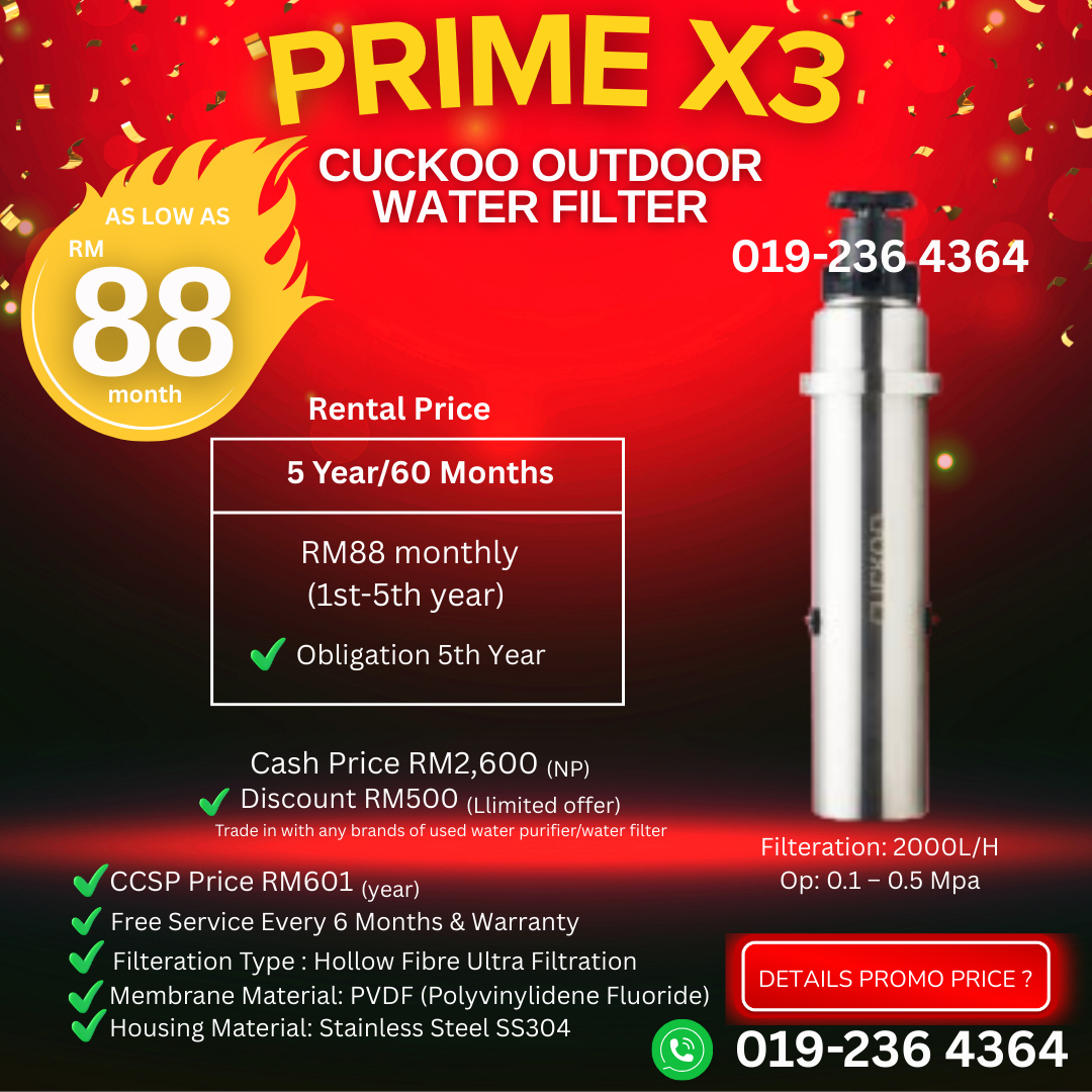 CUCKOO Outdoor Water Filter - Prime X3 Tahan Lasak! Menjamin Kebersihan Air Mandian, Basuhan Minuman! Seluruh Rumah Anda! Air Laju & Tidak Tersumbat! Diskaun RM500! Details Call Nazry!